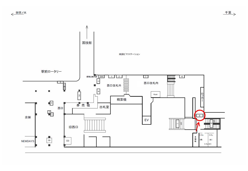 JR/両国駅/西口改札内/№8駅看板・駅広告、位置図