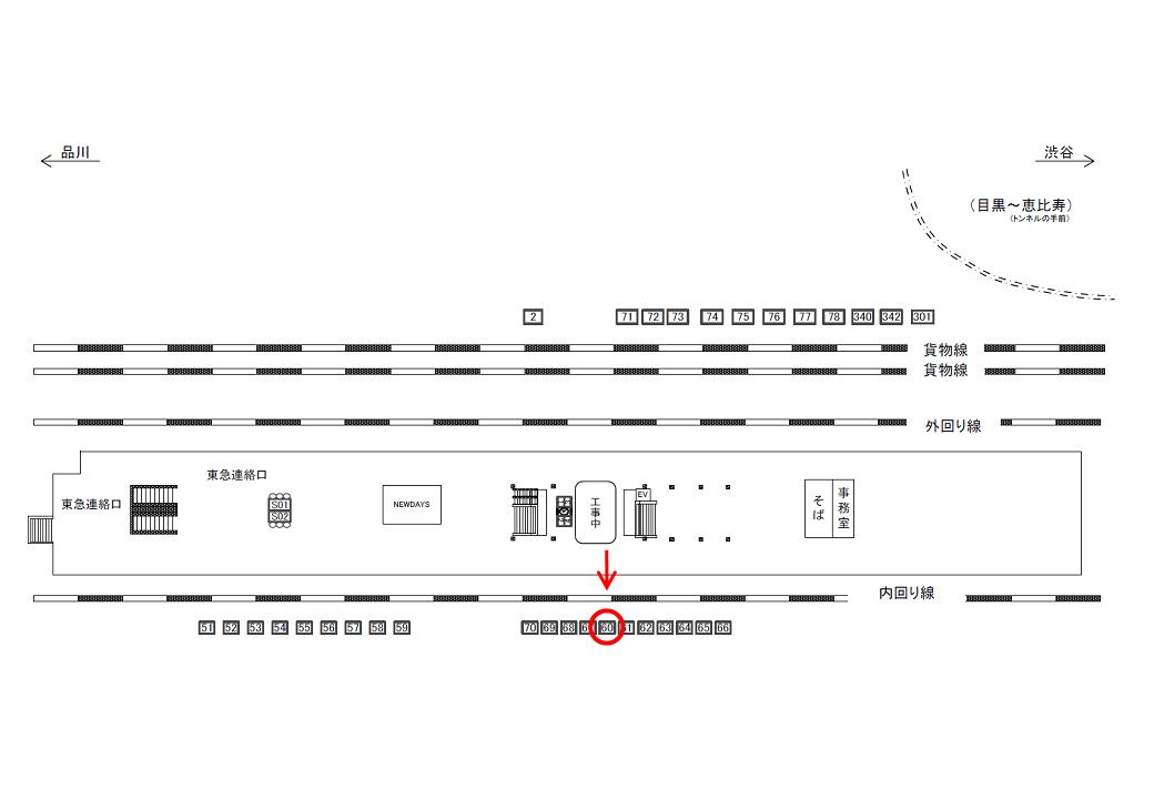 ○内回り線側№64 線路前(JR山手線 内回り 品川・東京・上野方面) |