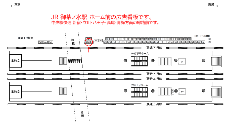 ○下り線側№136 線路前(JR中央線快速 新宿・立川・八王子・高尾・青梅方面) |