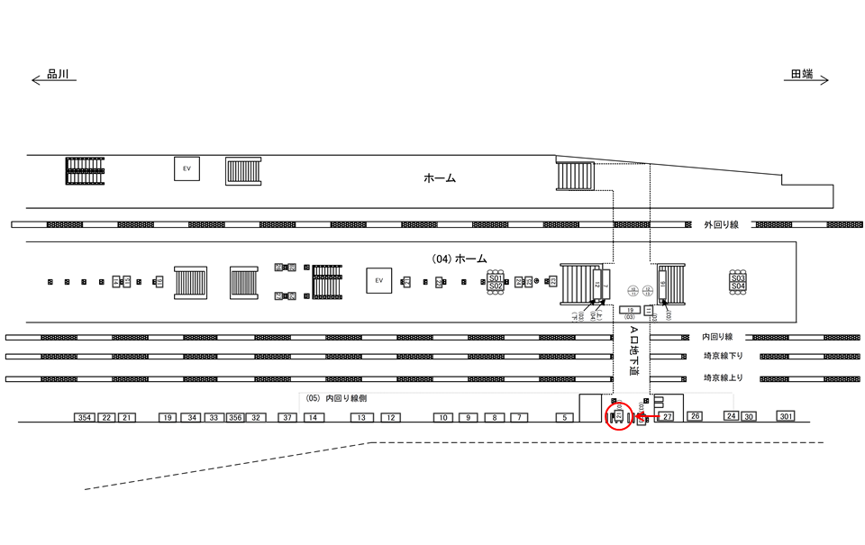 ・竹下口改札の真横にある柱上部に設置されています。改札外からも視認できます。