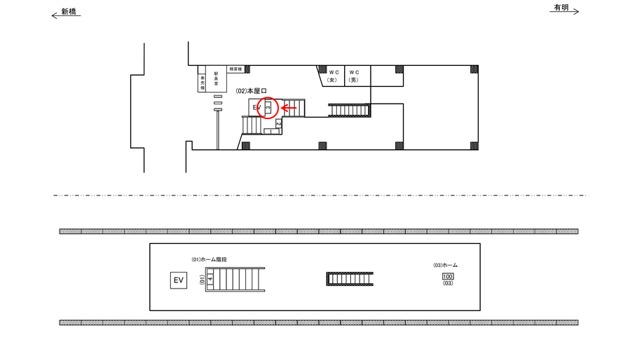ゆりかもめ 新豊洲駅、ホームから改札へ移動されるタイミングでご覧頂けるロケーションです。