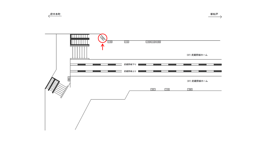 ○武蔵野線ホーム№101 ホーム上(JR武蔵野線 西国分寺・府中本町方面) |