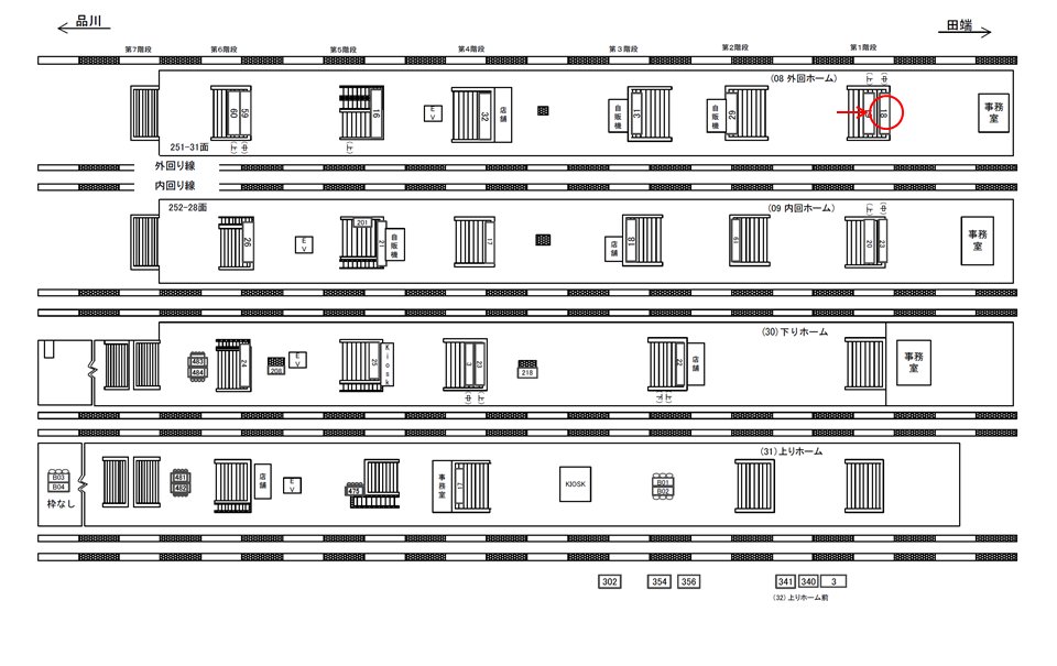 ○外回りホーム№31 ホーム上(階段正面 JR山手線外回りホーム) |