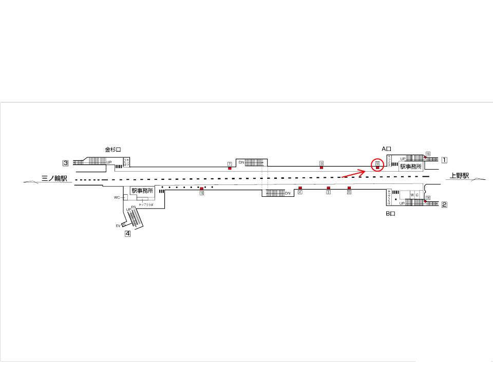 電車を下車され、入谷交差点方面の改札へ向かう際にもご覧頂けますので、駅周辺への誘導案内用にもご活用いただけます。