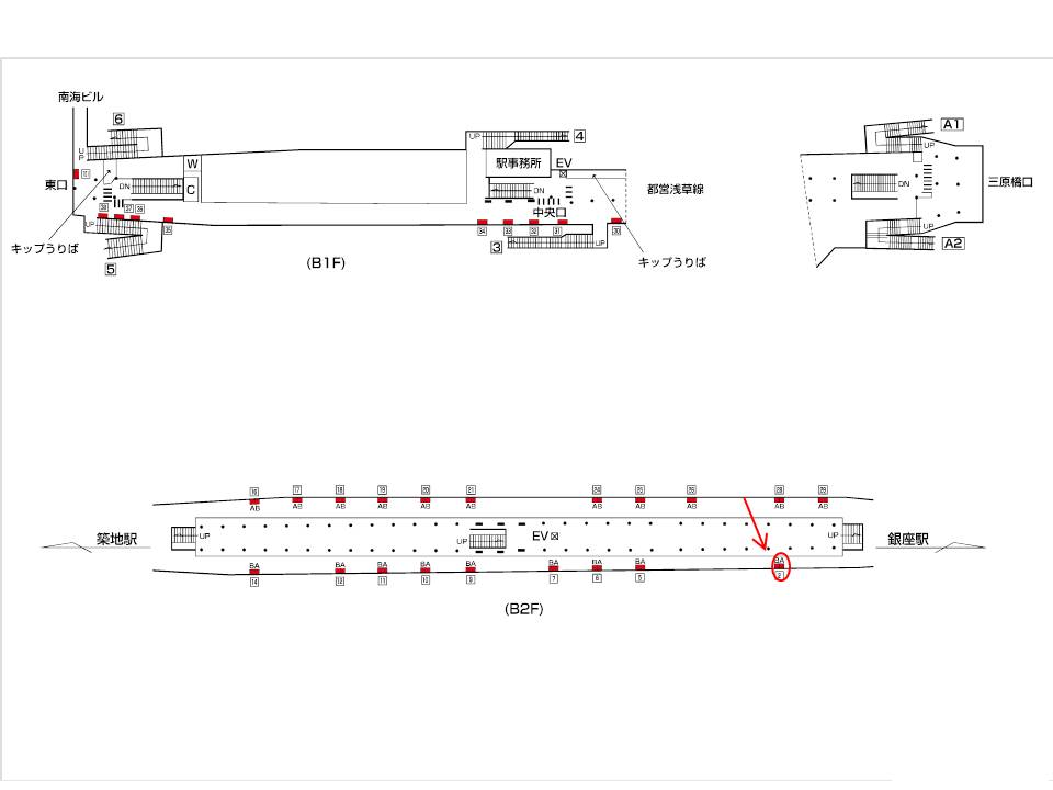 東京都中央区に所在する東京メトロ日比谷線の駅です。都営浅草線に乗り換え可能です。東京の中心繁華街銀座にほど近く、多くの買い物客や観光客などで賑わいます。