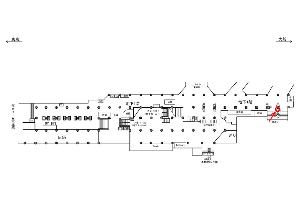 ○地下1階№32 改札外(汐留口改札、地下1階) |