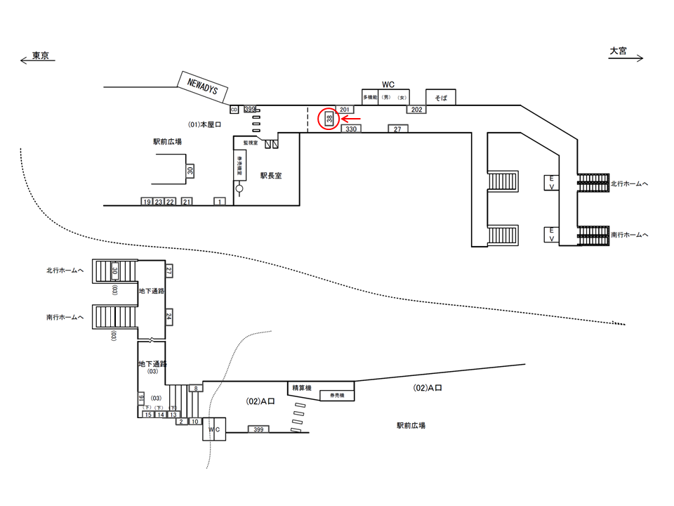 両面の看板なので、ホームへ向かう方・改札に向かう方どちらにも見せれる広告が可能です。