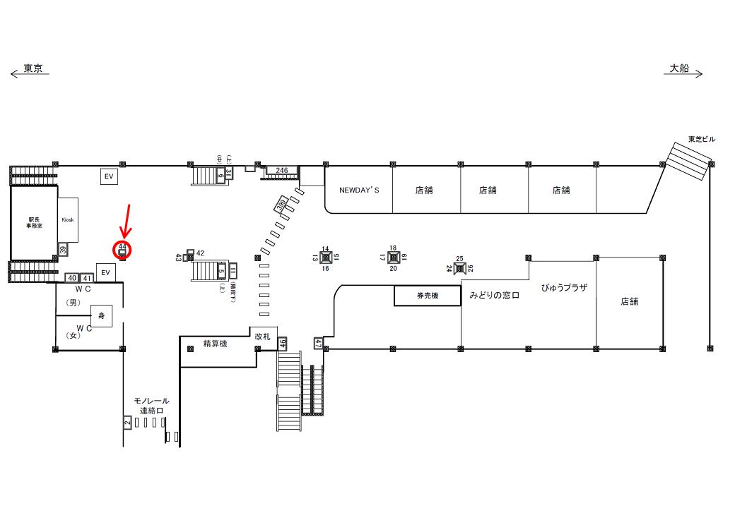 ○橋上本屋口№39 改札内コンコース(南口・モノレールのりかえ口 側) |