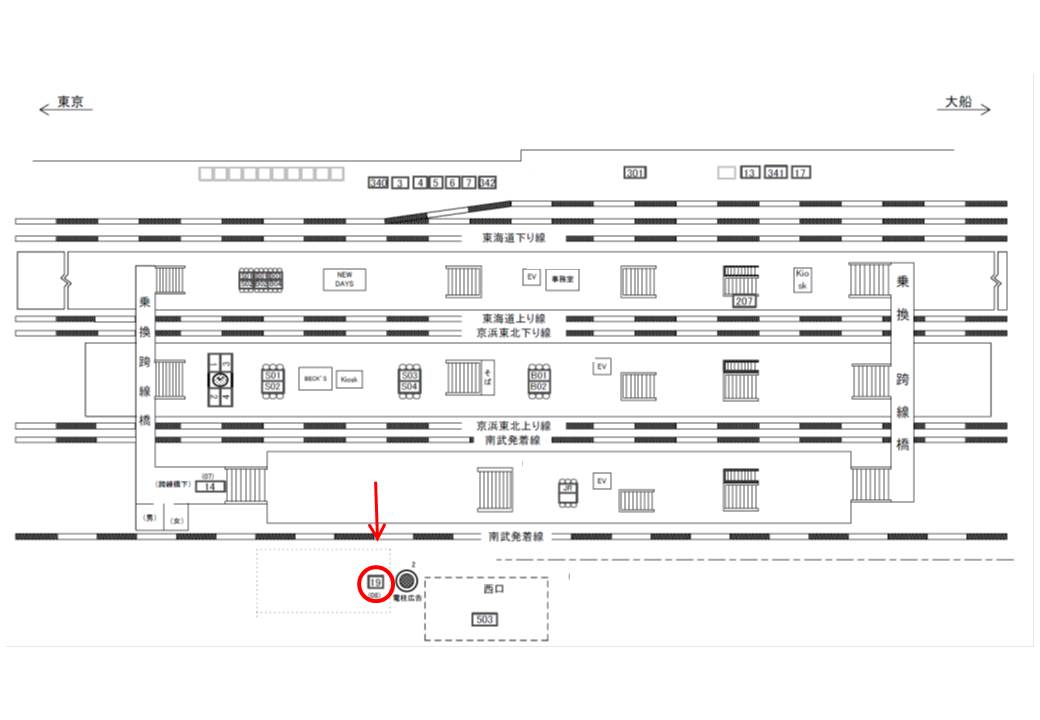 駅敷地内にあるNewDays(駅内コンビニエンスストア)の壁面に設置された横型ディスプレイ広告です。駅の中では珍しい音声を出せる広告ですので、NewDays付近を通行する方から注目を集めやすい映像広告です。