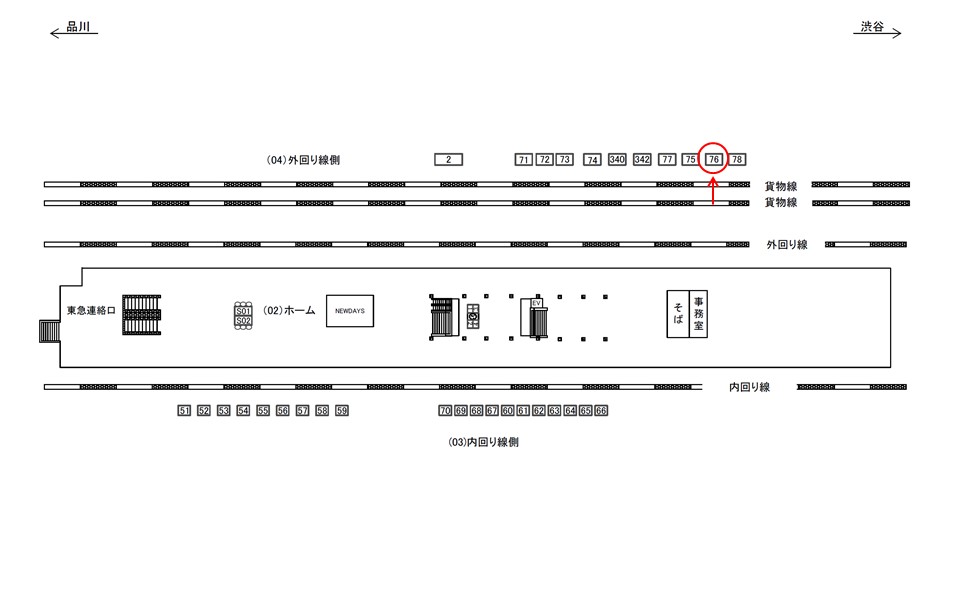 ○外回り線側№77 線路前(JR山手線 外回り 渋谷・新宿・池袋方面) |