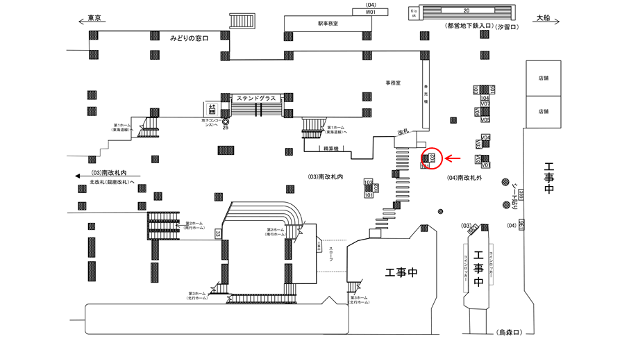 ○地下1階№32 改札外(汐留口改札、地下1階) |