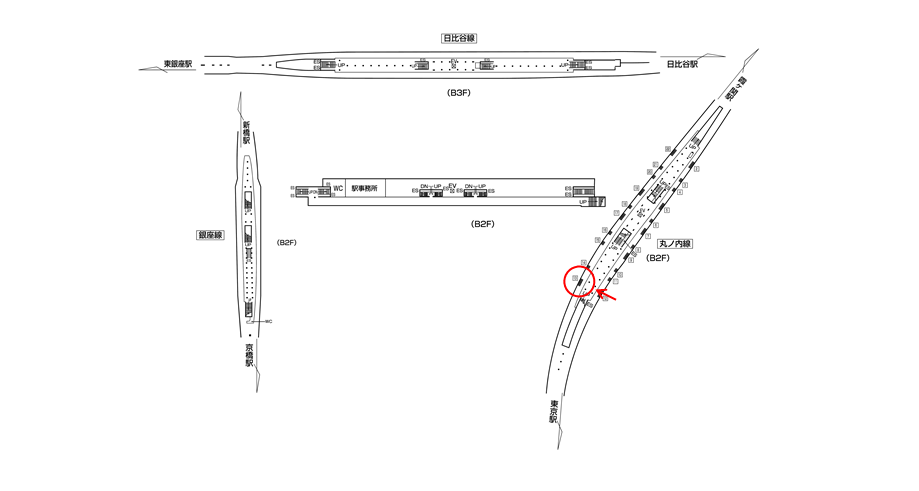 ○丸ノ内線№3B 線路前(丸ノ内線 大手町・池袋方面) |