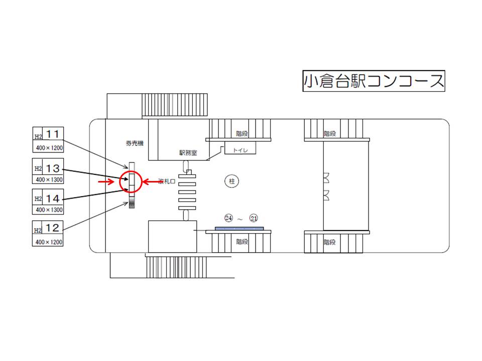 駅看板(サインボード)長期広告 | ○改札前両面№14 改札外 |