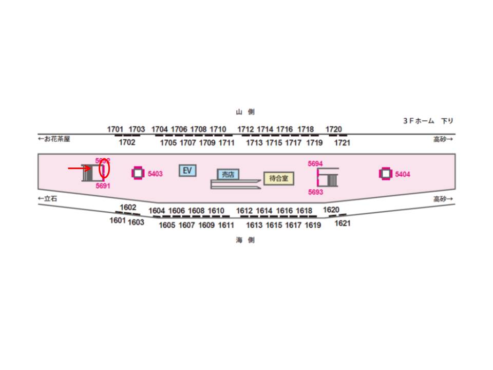 京成本線 青砥駅の3F下りホーム((京成船橋・京成津田沼方面・北総新鎌ヶ谷・千葉ニュータウン中央方面)の階段上に設置された看板です。ホームから改札へ向かう途中に見えますので誘導案内にも適した媒体です。