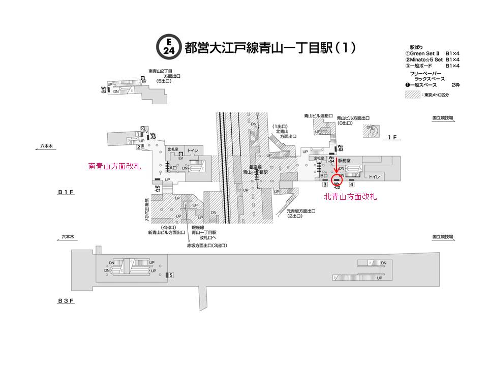北青山方面改札の中に設置された電飾タイプの広告看板です。