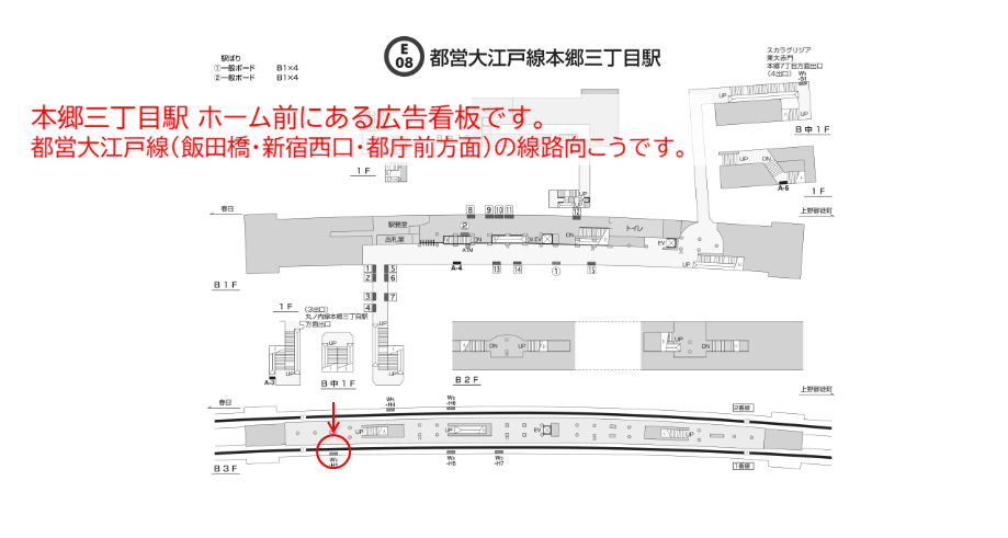 ■ 駅看板「都営 本郷三丁目駅 大江戸線W5-H1」の広告ロケーション
