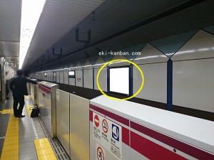 大江戸線、線路前(飯田橋・新宿西口・都庁前方面)に設置された電飾タイプの広告看板です。