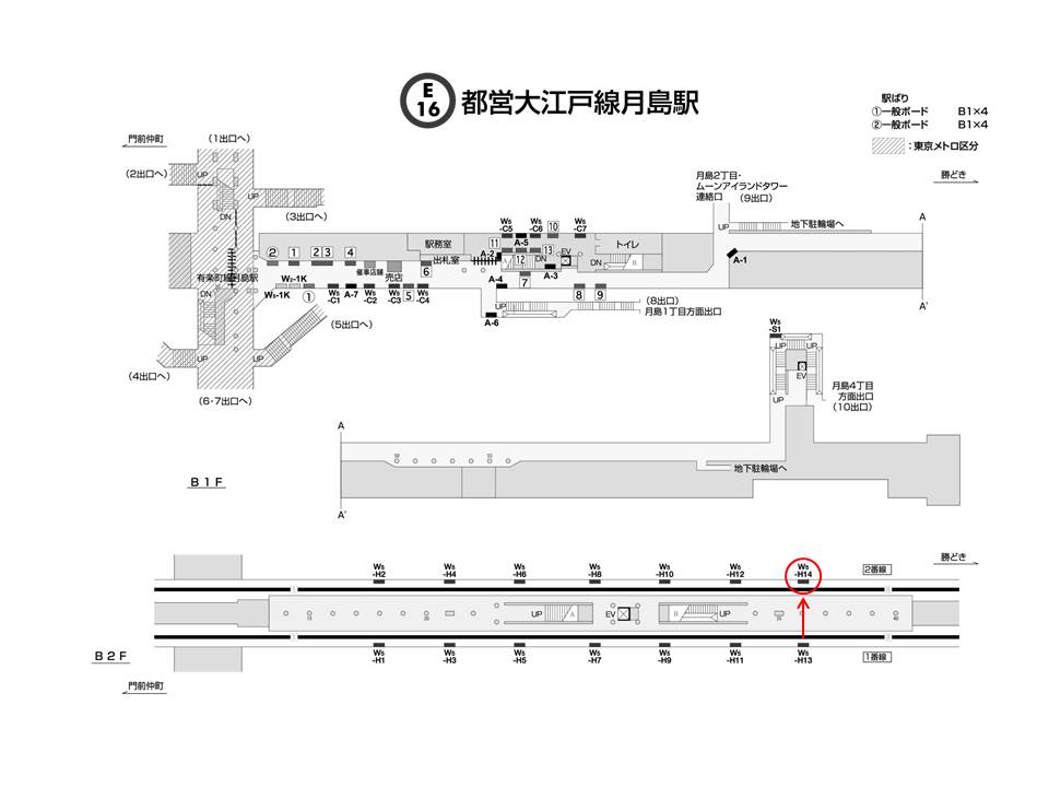 都営/月島駅/大江戸線W5-H14№14駅看板・駅広告、位置図