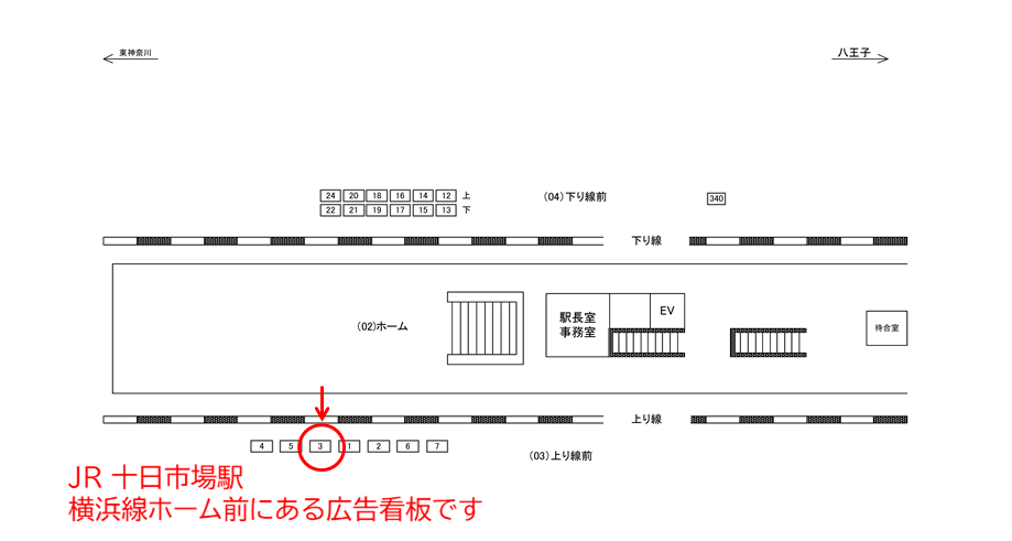 ホーム看板はその駅を利用される方へ向けた企業広告や店舗施設紹介、サービス商品周知に適したロケーションです。日々十日市場を利用される方を対象とした広告にご活用ください。