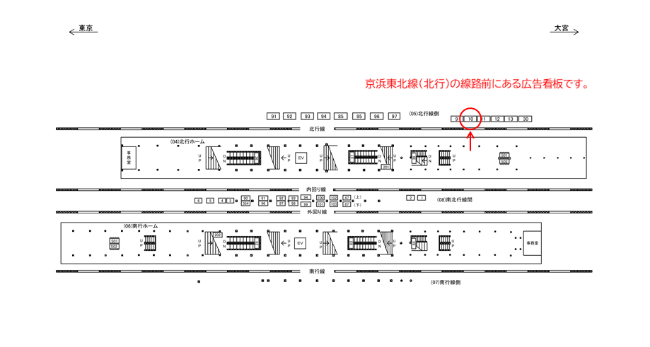○北行線側№91 線路前(JR京浜東北線 上野・大宮方面) |
