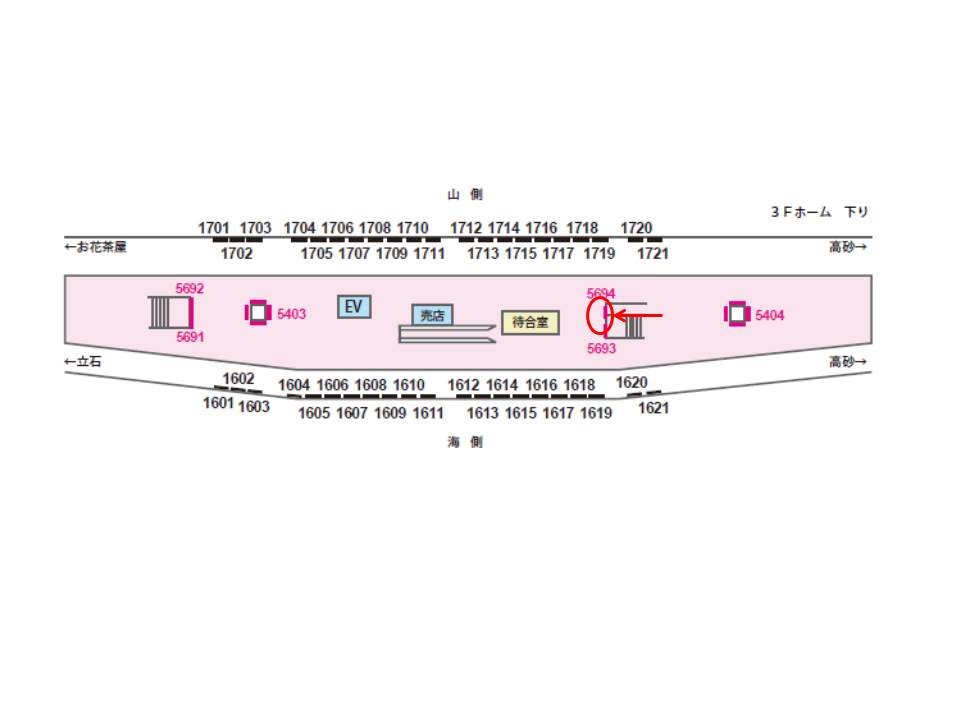 京成本線 青砥駅の3F下りホーム((京成船橋・京成津田沼方面・北総新鎌ヶ谷・千葉ニュータウン中央方面)の階段上に設置された看板です。ホームから改札へ向かう途中に見えますので誘導案内にも適した媒体です。