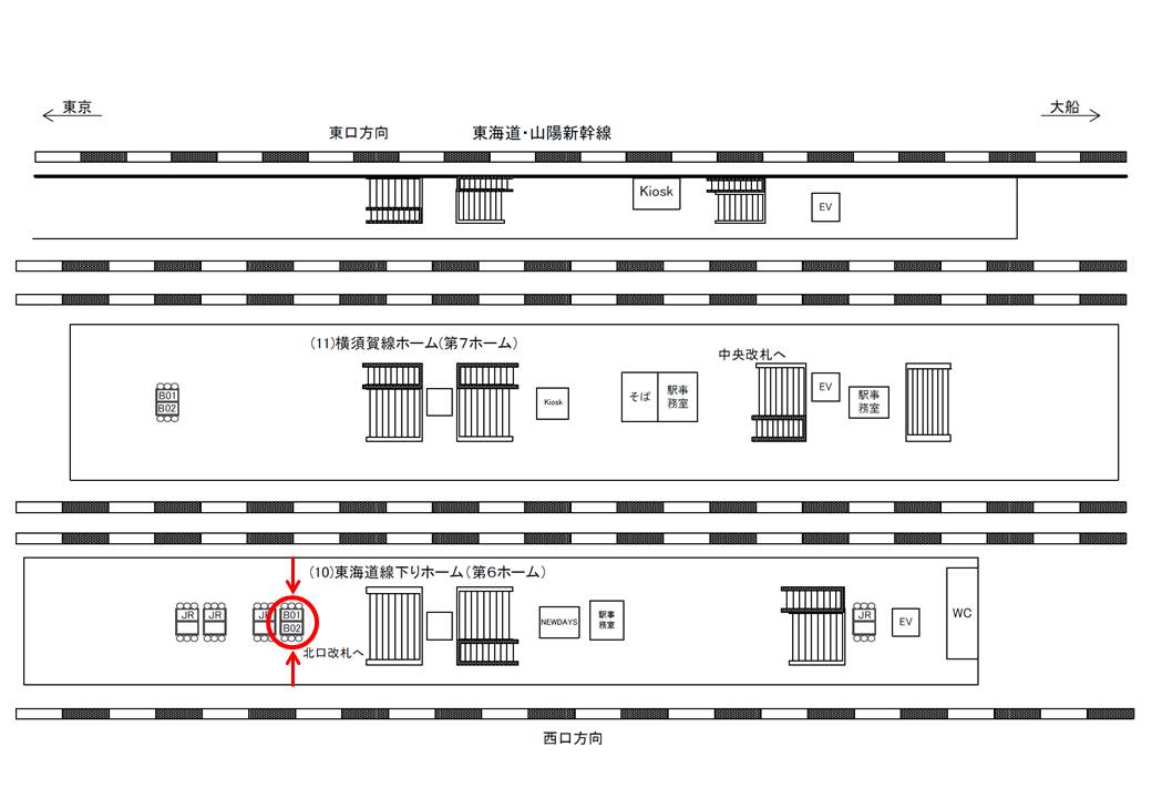 ○第3ホーム№B01&B02 ホーム上(京浜東北線 横浜・大船方面/上野東京ライン 宇都宮・高崎線、東京・上野・大宮・宇都宮・高崎方面) |