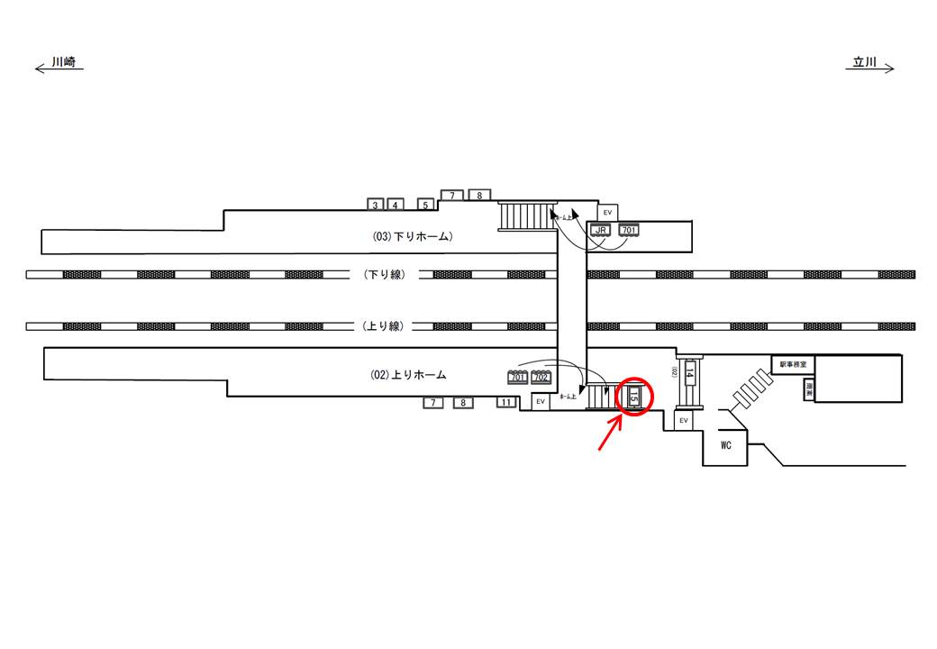 階段正面に設置されています。下りホームから改札へ向かう際にご覧いただけます。JR久地駅を利用する方々を対象とした広告周知にお役立ていただけます。