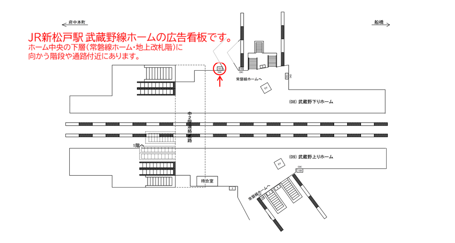 JR 新松戸駅の駅構内ホーム、駅広告(駅看板)設備のご紹介です。