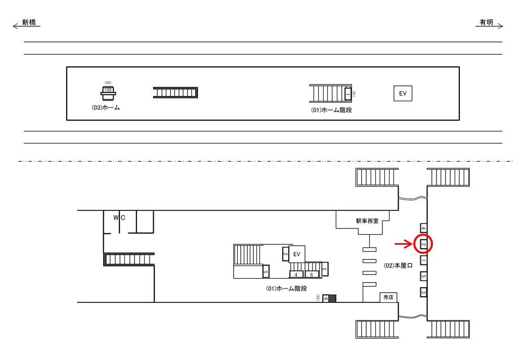 改札を出た正面に設置されております。