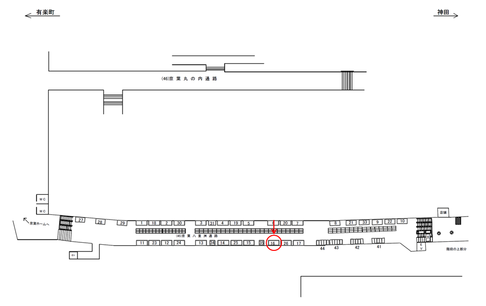 ○京八通路№41 改札内(京葉線への八重洲連絡通路) |