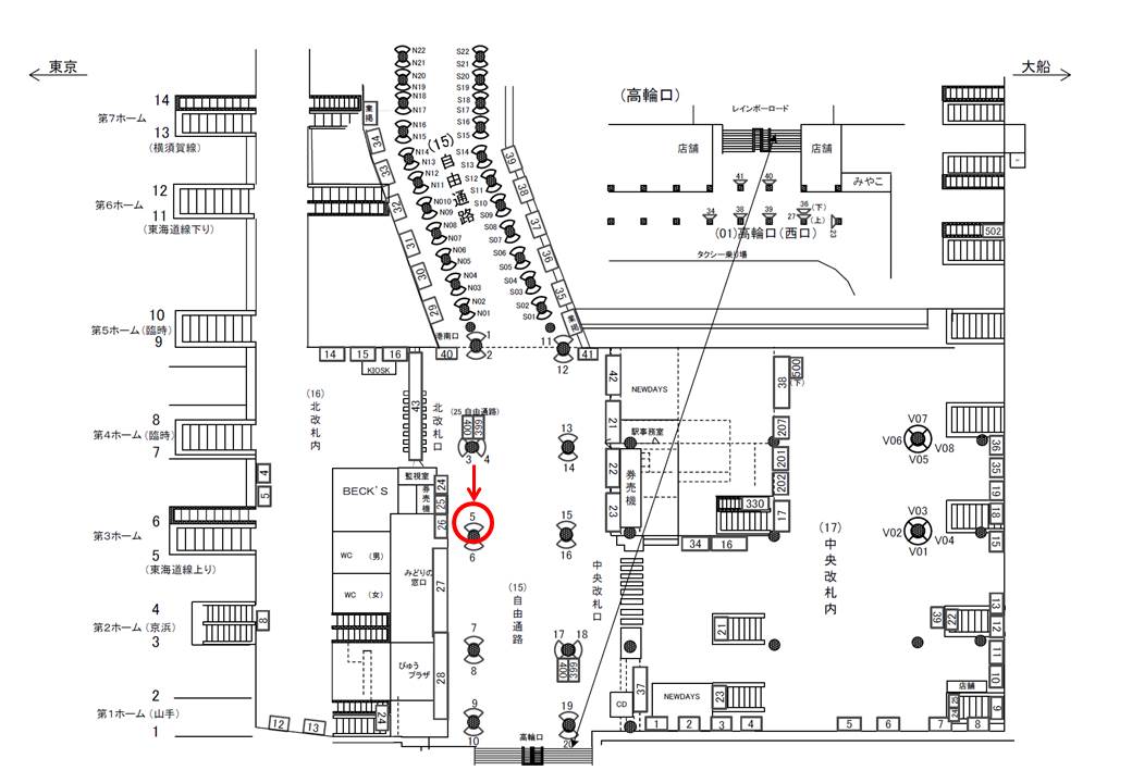 ○中央改札内№22 改札内コンコース(ホーム階段正面 JR京浜東北線ホーム) |