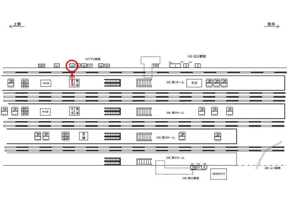 常磐線快速(下り方面、天王台・取手・土浦・水戸方面)の線路前に設置されております。
