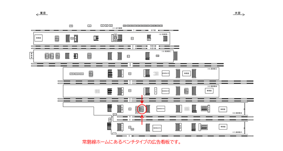 ○地平第二№B01&B02 ホーム上(ベンチ看板 JR宇都宮線〈東北線〉・高崎線ホーム) |