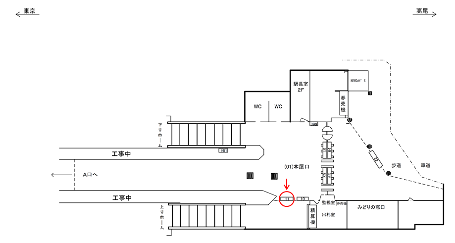 ○下り線側№101 線路前(JR中央線快速 新宿・立川・八王子・高尾方面) |