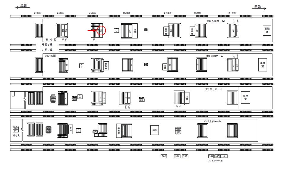 ○外回りホーム№18 ホーム上(階段正面 JR山手線ホーム) |