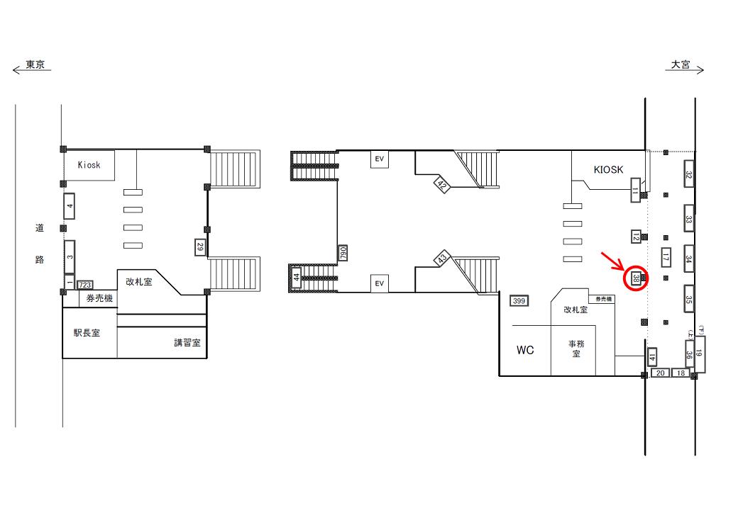 ※「A口№38」の手前に壁がせり出ています。改札を出た直後では壁が広告にかかります。ご検討の際は予めご留意ください。
