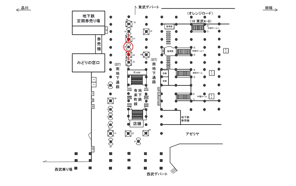 ○中央通路№67 改札外コンコース(中央通路 西武東口方面 柱) |