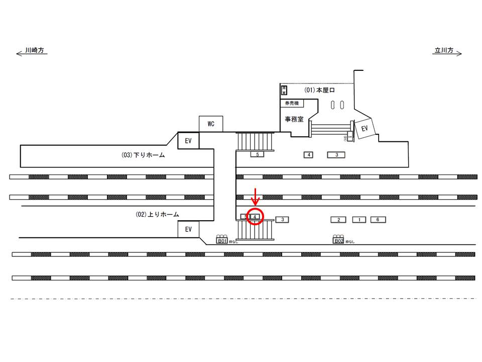 主に立川方面への電車をお待ちの方々に正対する位置にございます。電車の待ち時間を利用し、駅利用者への安定した広告宣伝が行え、宿河原駅を利用される方へ向けた企業広告や店舗施設紹介、サービス商品周知に適したロケーションです。