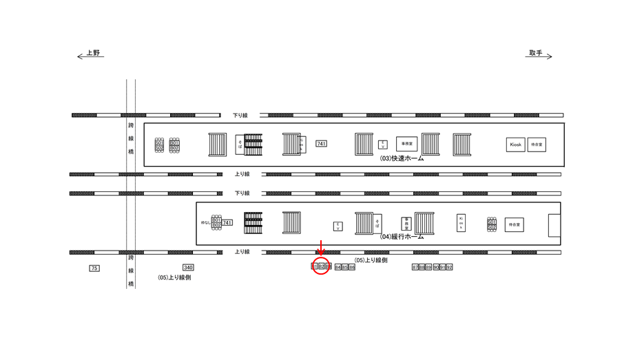 駅看板「JR 柏駅 上り線側№82」は常磐線の上り電車をお待ちの方に見てもらえるロケーションです。