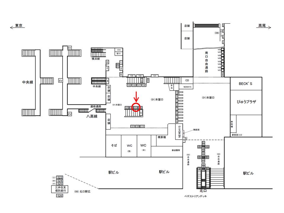 ■駅看板「JR 八王子駅 本屋口№123」の広告ロケーション