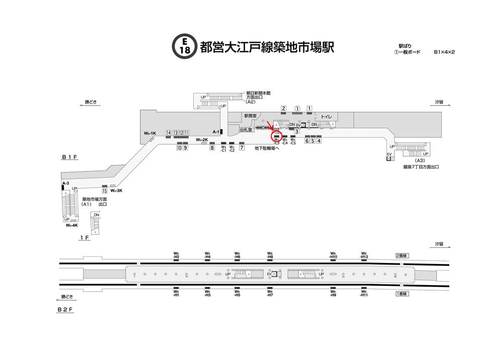 都営/築地市場駅/大江戸線W5-C3№3駅看板・駅広告、位置図