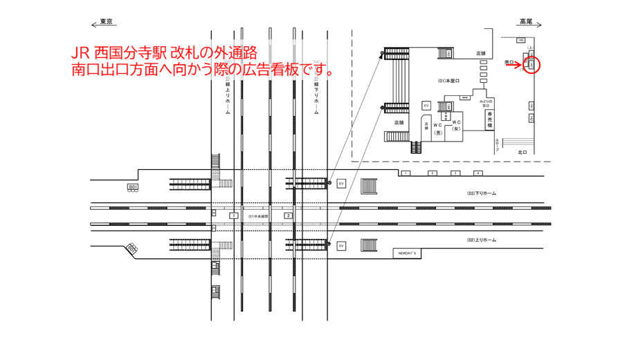 ■駅看板「JR 西国分寺駅 本屋口№147」の広告ロケーション