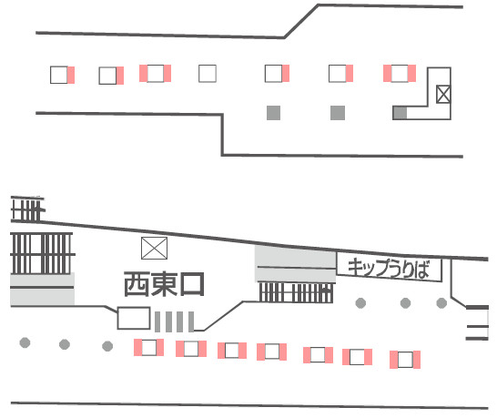 駅看板(ホーム上・線路前・改札内外コンコース)、ポスターボード(改札内外コンコース)などの広告設備がございます。