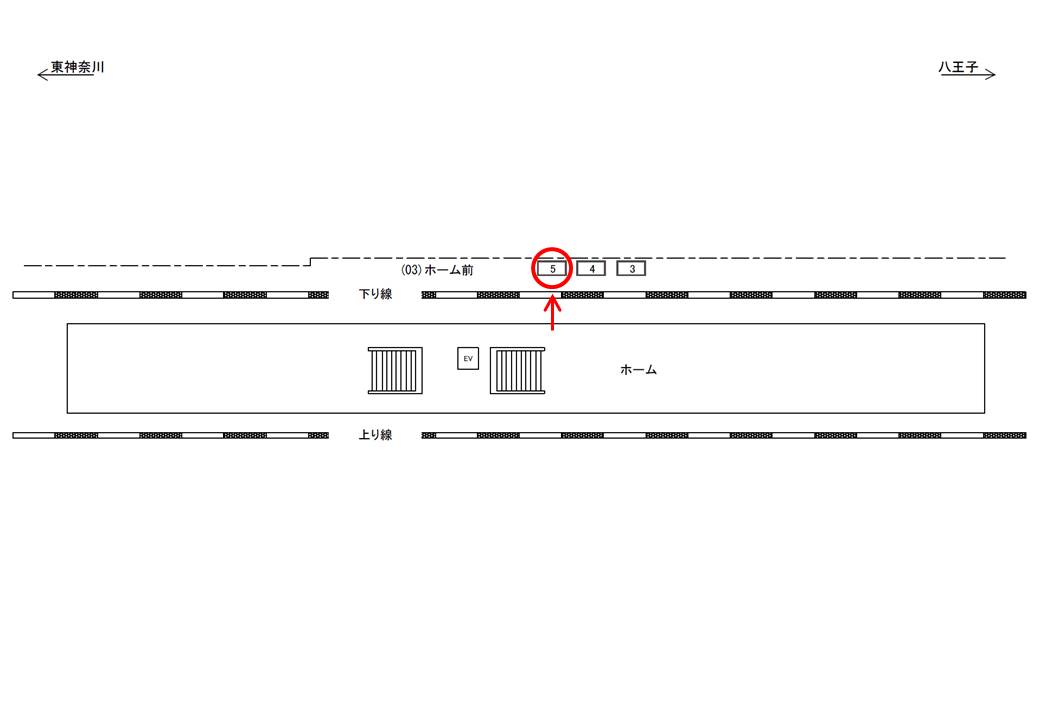 JR矢部駅のプラットホームはJR横浜線の上下線が停車する島ホーム1面です。駅看板「JR 矢部駅 ホーム前№5」側の線路は横浜線の八王子方向です。相模原・橋本・八王子方面へ向かう電車が停車します。八王子行・橋本行の電車を待つ際に広告を見てもらえます。