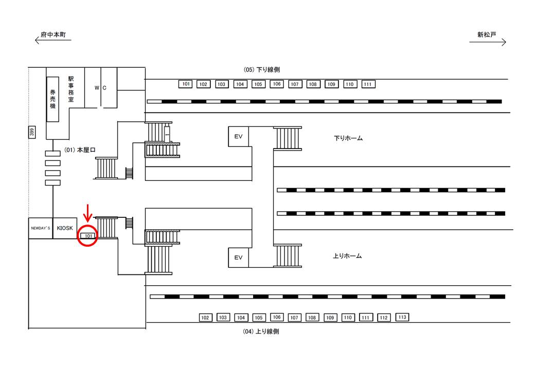 東所沢駅のJR武蔵野線プラットホームは、府中本町方面ホームと西船橋方面ホームの二つの島ホームからなっております。広告看板の位置は、ホームへ向かう通路が分岐する前にありますので、両ホーム利用者に向けた広告に使えます。
