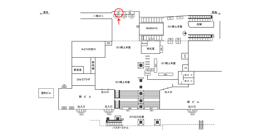 ■駅看板「JR 平塚駅 橋上本屋口№22」の広告ロケーション
