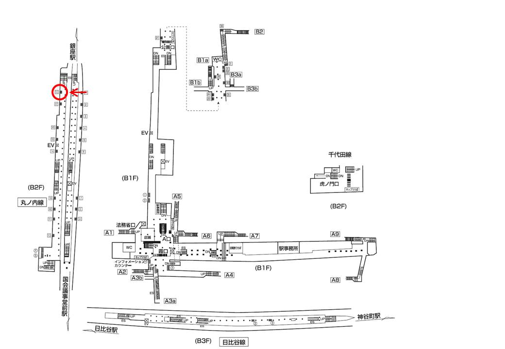 東京都千代田区に所在する東京メトロ 日比谷線・丸ノ内線・千代田線の停車駅。