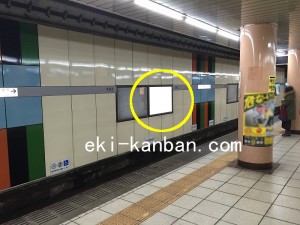 日比谷線の銀座・六本木・中目黒方面線路前に設置された電飾タイプの広告看板です。