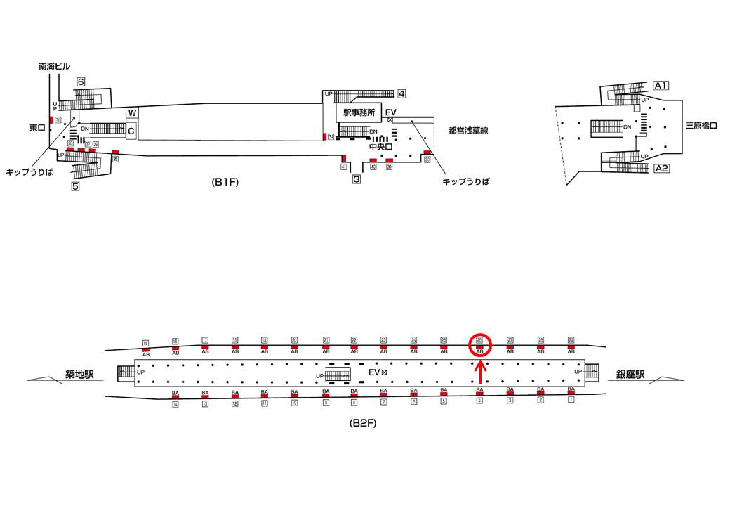 東京都中央区に所在する東京メトロ日比谷線の駅です。都営浅草線に乗り換え可能です。東京の中心繁華街銀座にほど近く、多くの買い物客や観光客などで賑わいます。