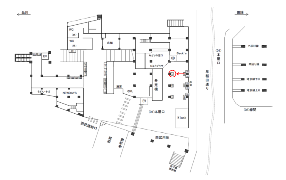 ■駅看板「JR 高田馬場駅 本屋口№127」の広告ロケーション
